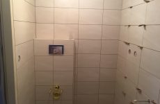 Deze badkamer is voorzien van nieuw sanitair en opnieuw betegeld